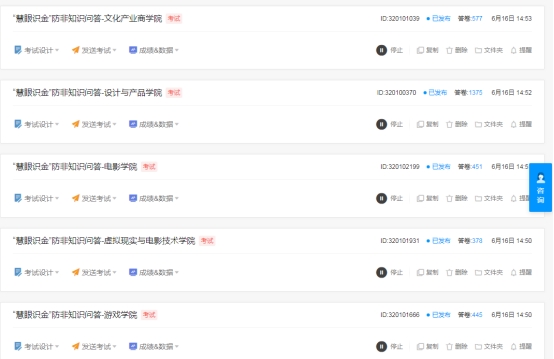 组织全校范围内开展“慧眼识金”防非知识问答活动,通过微信小程序问卷答题的方式,普及金融安全知识。题目涵盖非法金融活动识别、个人信息保护、合法借贷渠道等内容,帮助学生掌握实用技能,提升风险甄别能力。